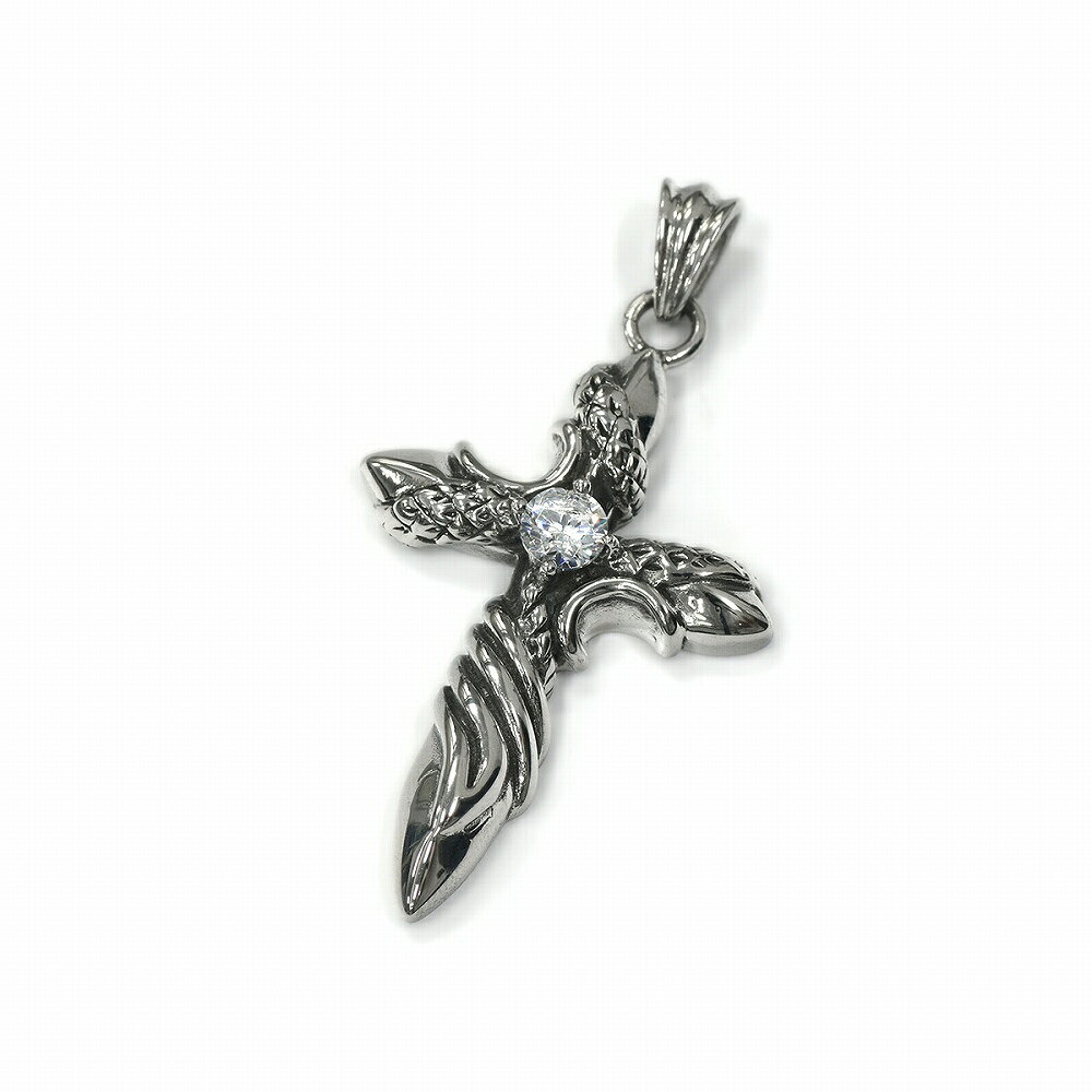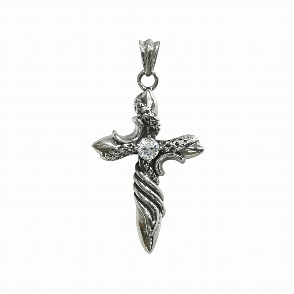 中央にジルコニアをはめ込んだクロス(十字架)モチーフのデザインペンダント。